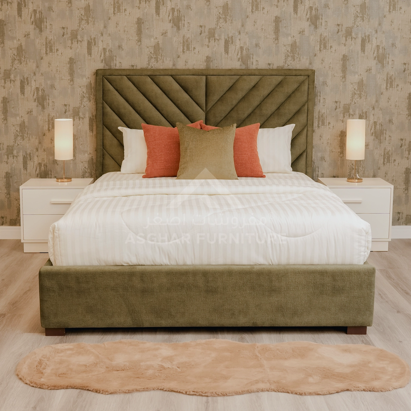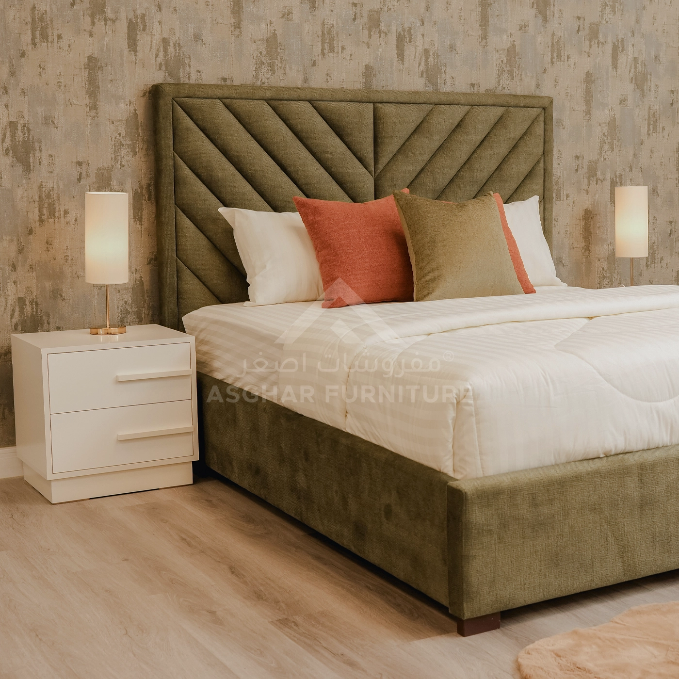 - Headboard style: triangle stitched headboard