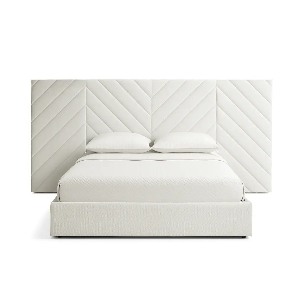 Farah upholstered bed is a modern piece designed for any bedroom.‎ With diagonal lines and a contemporary design which embodies the true sense of a statement piece, it has a wooden structure and a customizable headboard for better adaptation to a bedroom’s design.‎