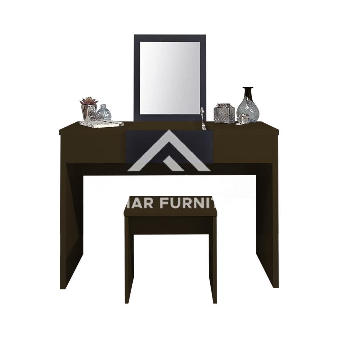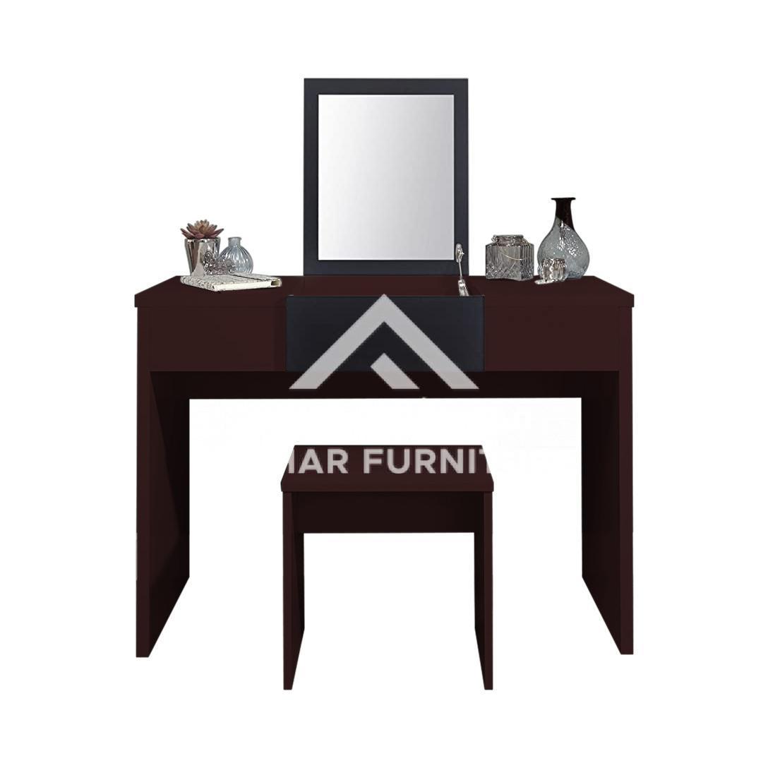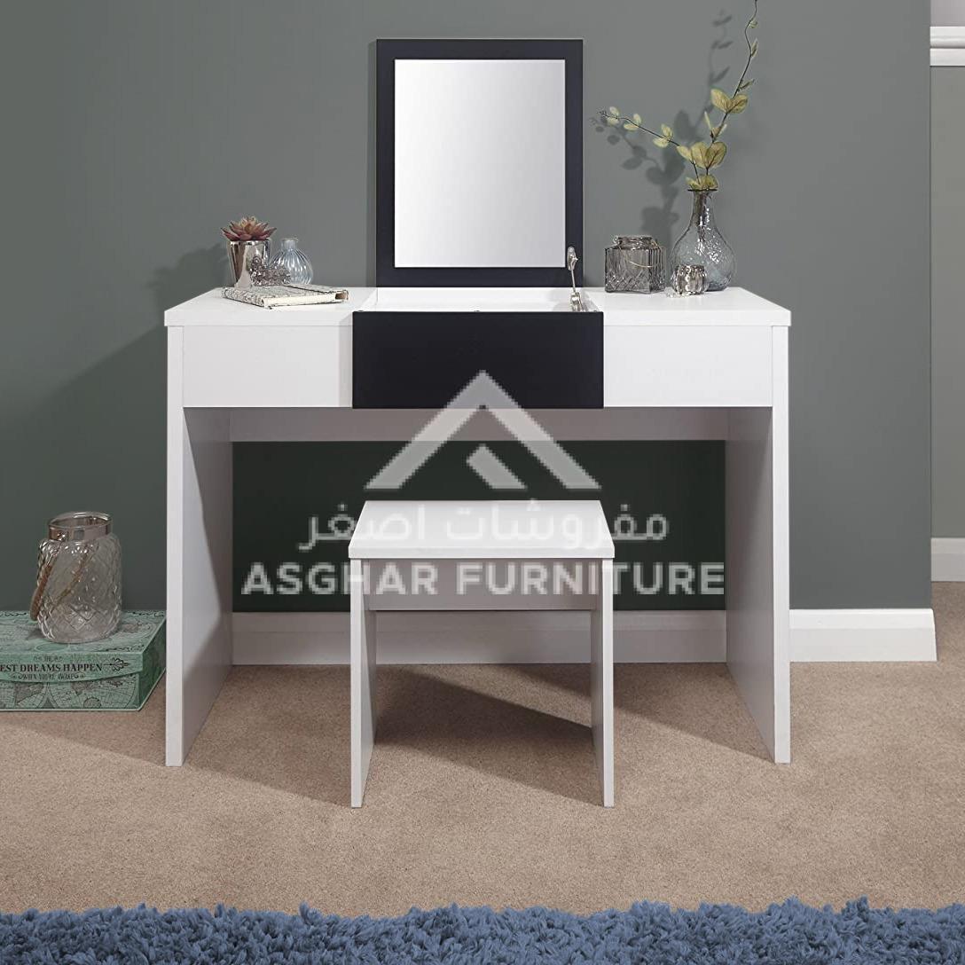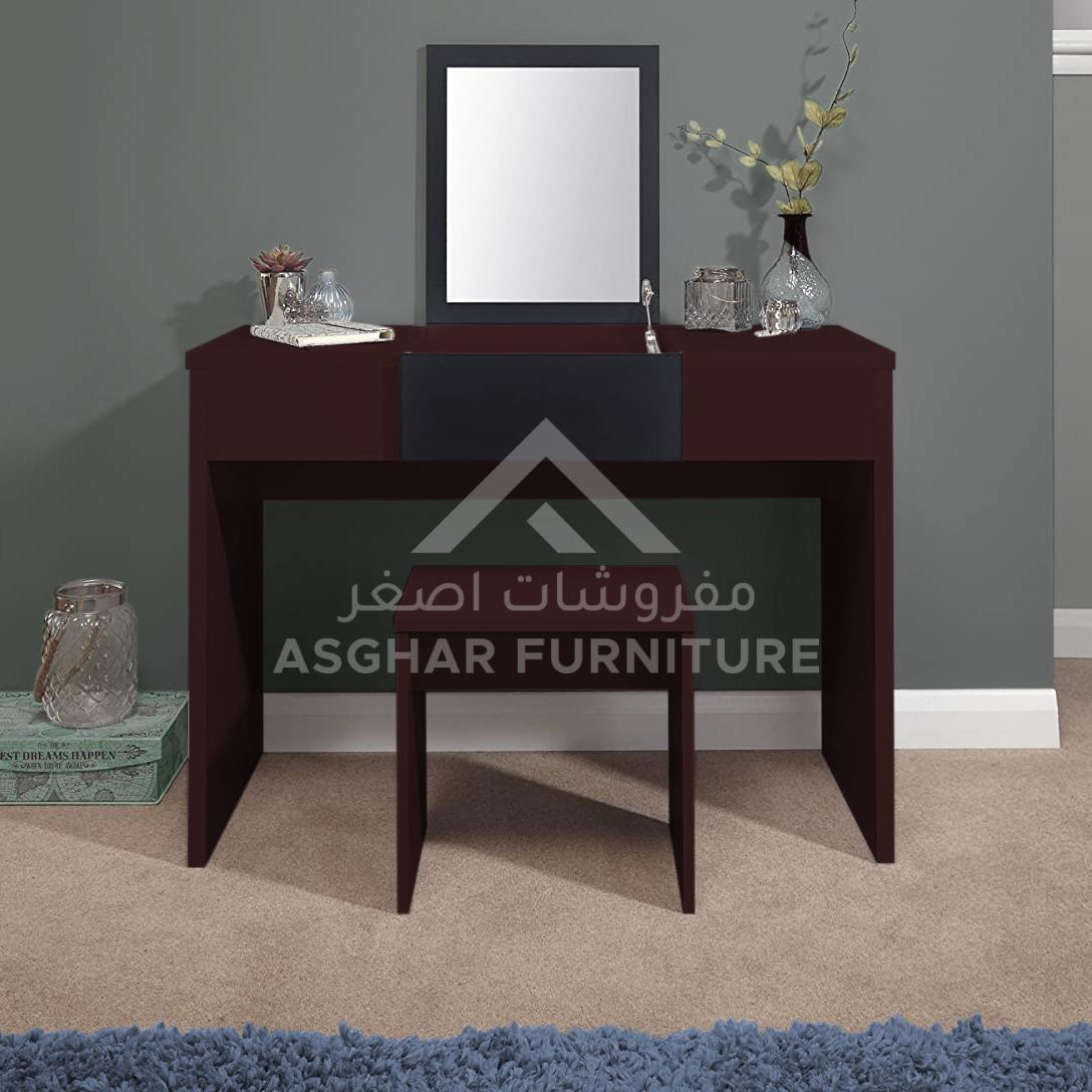 Meet our stunning Oriana Vanity Dressing Table set. is a contemporary minimalistic design by Asghar Furniture making it a prestige addition to your bedroom. The center of Oriana Vanity Dressing Table top is a mirror designed specifically to reveal a spacious compartment underneath when lifted. Not to mention that it is crafted with premium quality wood to ensure you are provided with the right standard.