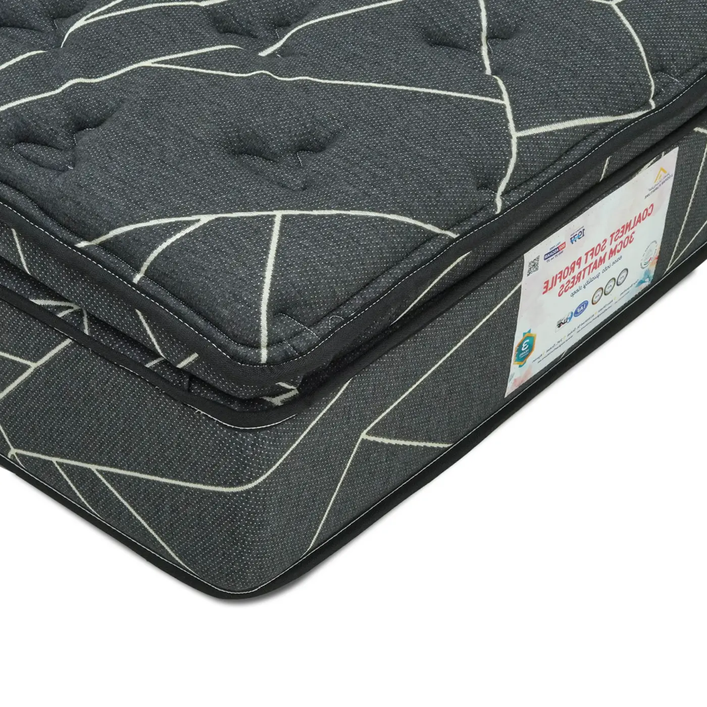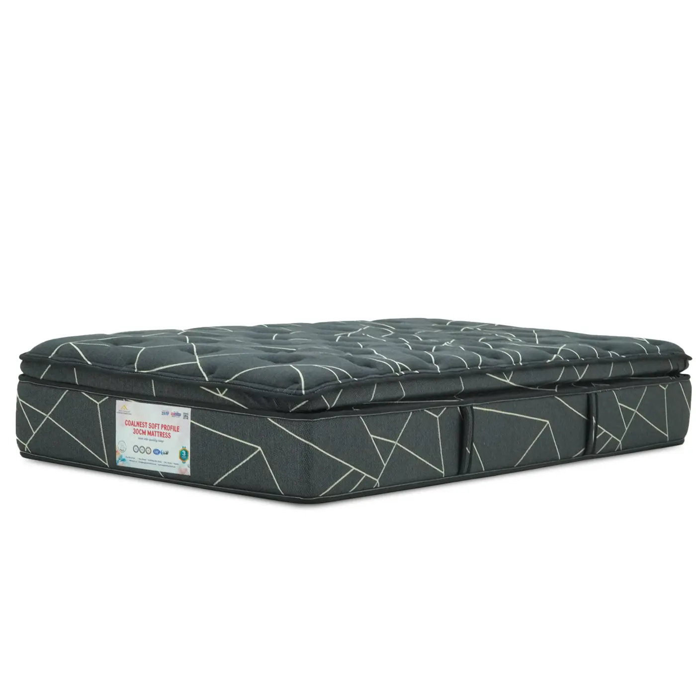 The Coalnest Soft Profile 30CM Mattress is expertly crafted for luxurious comfort and exceptional support. Featuring a high-performance pocket spring system, it delivers personalized support and minimizes motion transfer for undisturbed sleep. The soft knitted fabric cover offers a breathable, plush surface, while the profiled foam contours to your body for targeted pressure relief and proper spinal alignment. The pillow top adds an extra layer of cushioning, making it the ideal choice for a restorative and comfortable sleep experience. Backed by a 3-year warranty.