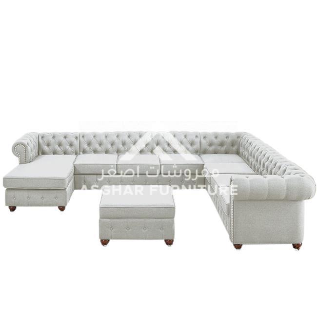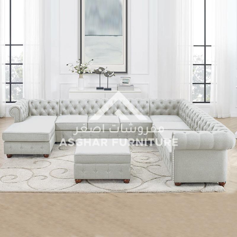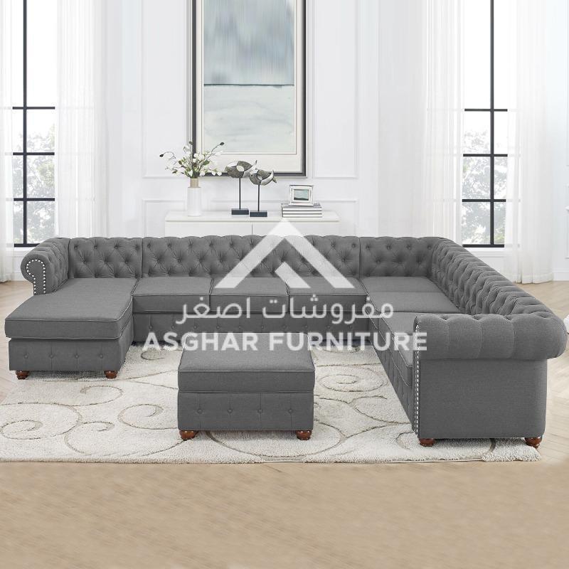 Gowans Sectional Sofa: Showcasing a timeless yet modern elegance that will look spectacular paired with a range of decors, the Asghar Furniture looks just as great as it feels. Tufted button back and nailhead trim, the Gowans is a stylish addition to your home.