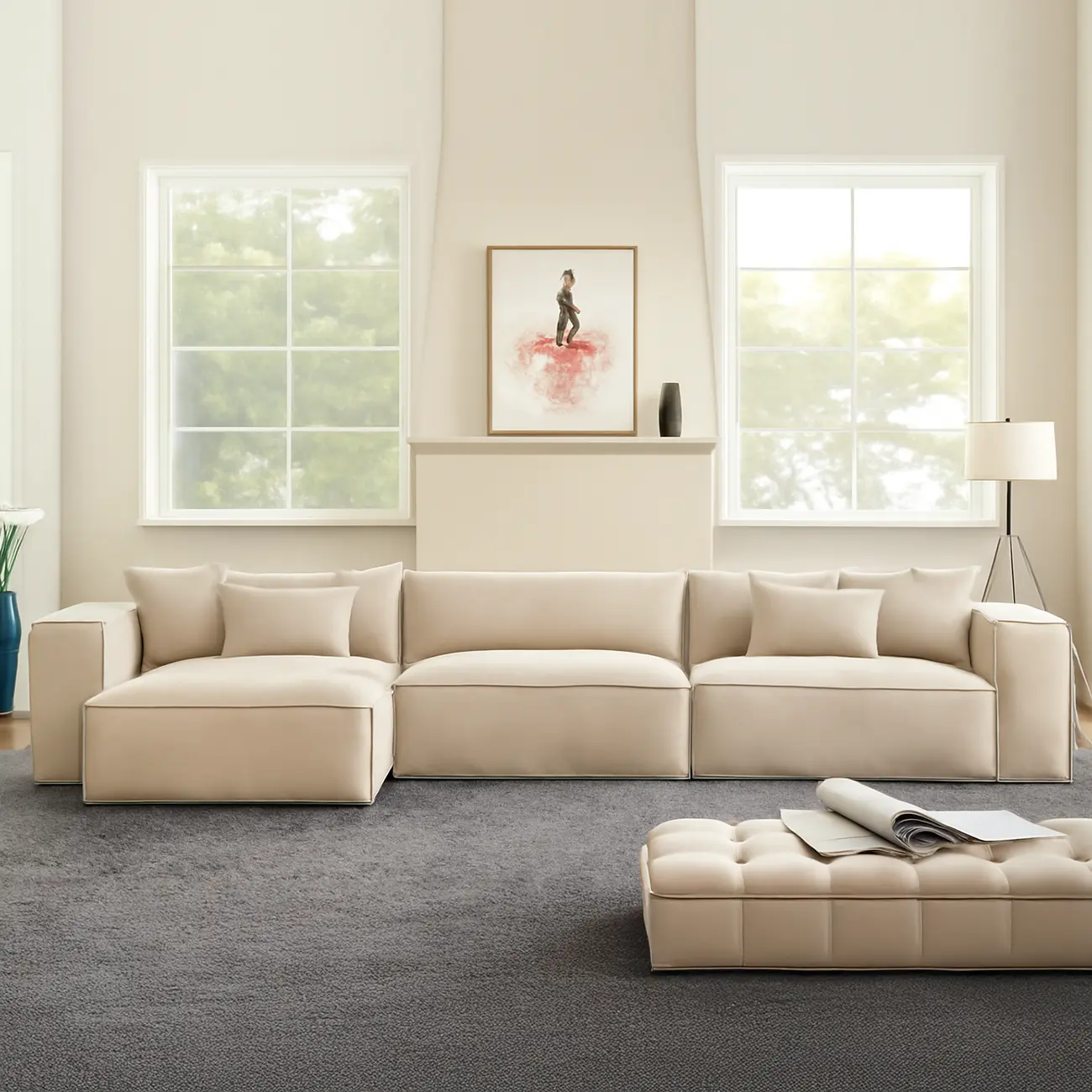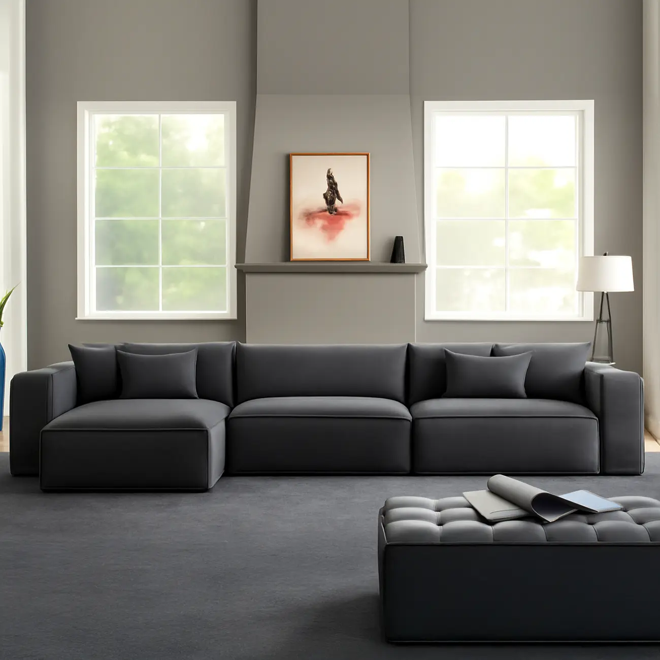 Elevate your living space with the Asghar Furniture Polly Modular Sofa. This versatile and stylish modular sofa effortlessly adapts to your needs, whether you desire a sectional sofa, an L-shaped configuration, or a classic couch setup. Its sleek design, plush cushions, and exceptional comfort make it the perfect addition to any room. Discover the ultimate in flexibility and style with the Polly Modular Sofa today.