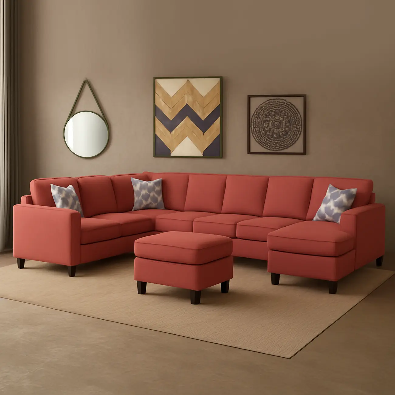 At Asghar Furniture, Seat all your friends and family comfortably with this corner sectional sofa. The Yateley Modular Sofa can be arranged in whatever shape works best for your space to best meet your needs. The seat is firm enough to be supportive while still comfortable, and the back cushion is softer and comfortably angled slightly back.